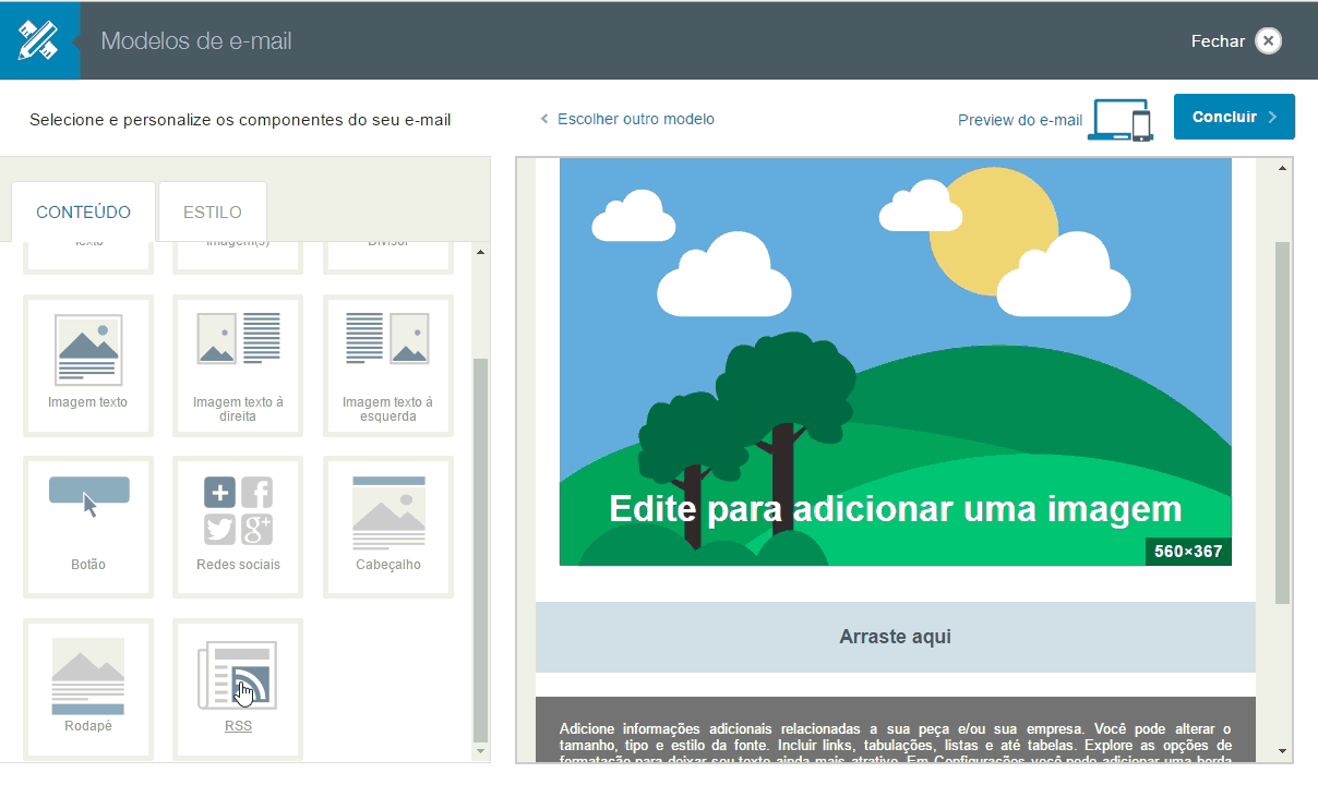 Agora com o Dinamize Mail você pode criar seu email marketing a partir de feeds RSS diretamente em nosso editor Drag and Drop. Veja como é simples: